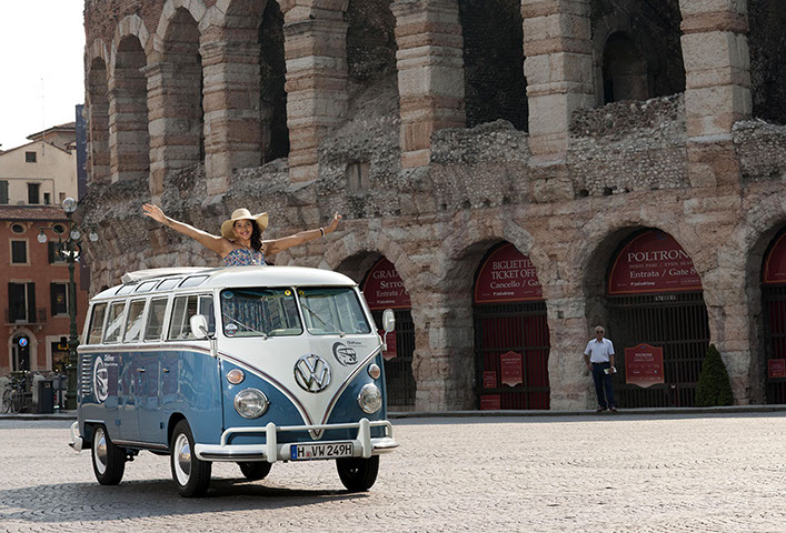 Cassandra Steen im T1 Samba Bus, Arena di Verona