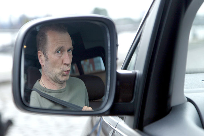 Schauspieler Peter Lohmeyer mit seinem VW Caddy